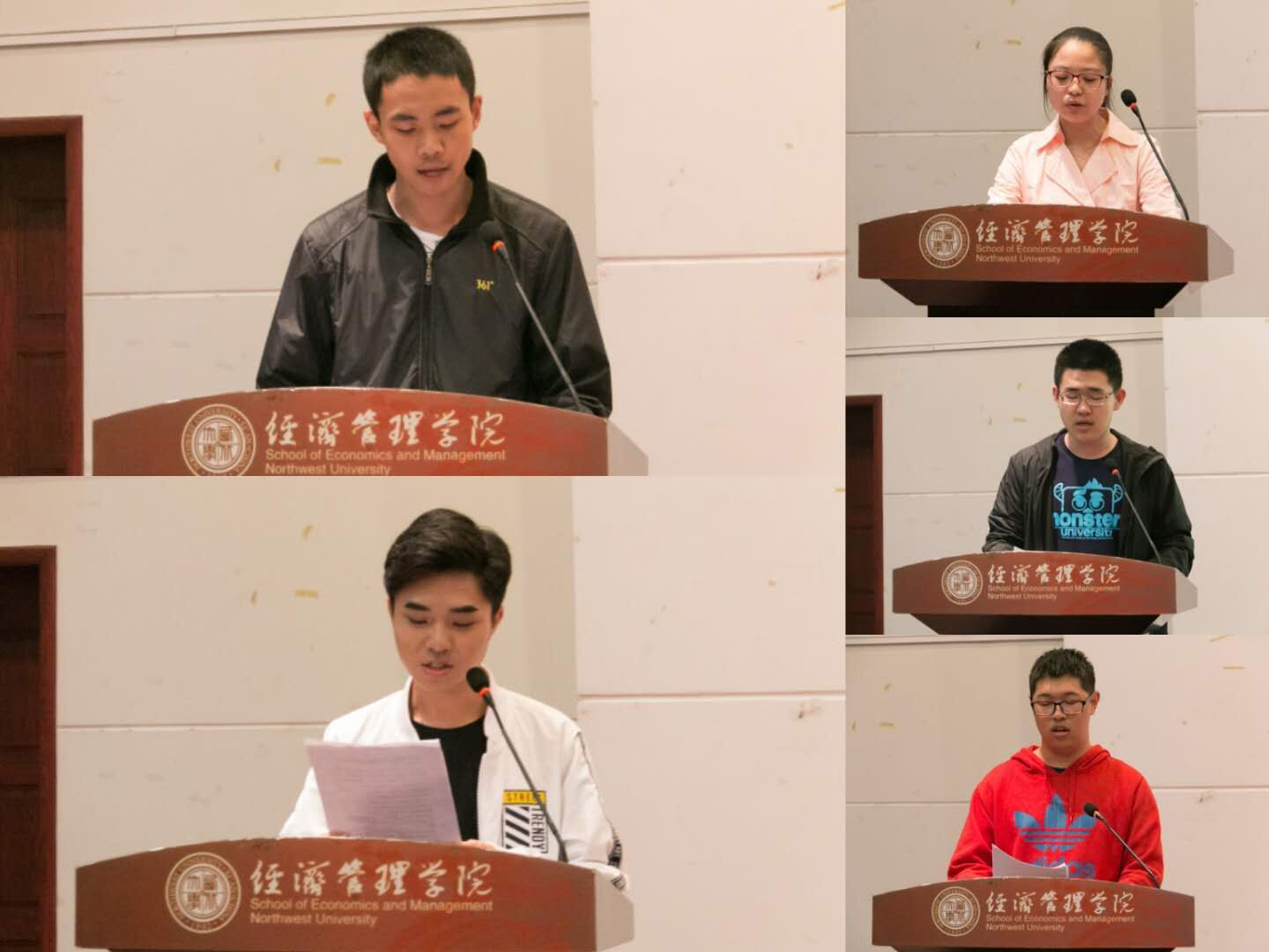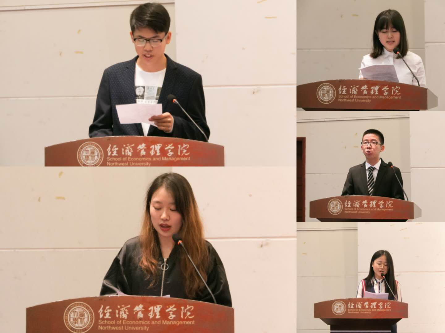 2017级各班选送的十位同学分别选取了习近平总书记在中国共产党成立95周年大会上的讲话、《之江新语》语录、习近平总书记对广大青年的青春寄语、习近平总书记给青年朋友回信的信件内容、习近平总书记关于脱贫攻坚、两岸关系和干部培养的重要论述、习近平总书记在博鳌亚洲论坛上的讲话、习近平总书记的新年贺词等习近平总书记系列讲话、回信、著作中的选段,同学们极具舞台表现力和艺术感染力的诵读淋漓尽致的展现了经管青年学习习近平总书记讲话的获得感,让在座的老师同学接受习近平总书记讲话的再教育,引发在座师生对经典“习”语进一步的学习和思考,获得了评委和现场师生的满堂喝彩。经过了激烈角逐,张喆文同学摘得桂冠,李昊锟、马纯怡获得二等奖,马斯曼、闫晴、陈百丰同学获得三等奖。