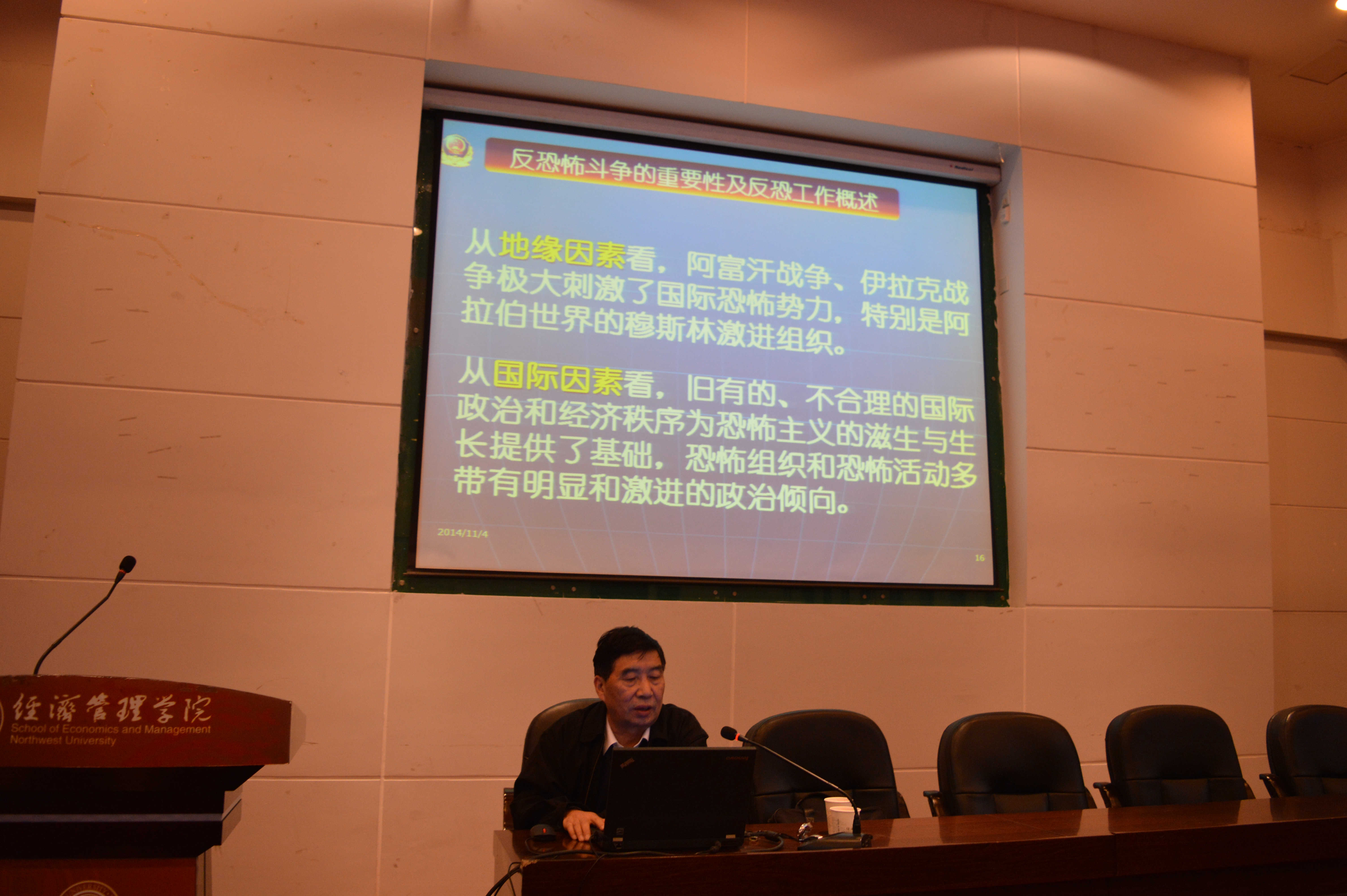 张民安巡视员首先对当前国内外反恐工作进行了概述,解析了恐怖主义的概念及特征,分析了恐怖活动的现状和发展趋势,提出全社会都要提升对反恐怖斗争重要性的认识,增强防控能力和措施;其次,张巡视员讲述了如何学习掌握各类消防知识,防止各类重大火灾事故的发生;最后,张巡视员就如何预防非法侵害,维护好人身财产安全这个话题做了精彩讲解。整场报告主题突出、案例丰富、图文并茂、信息量大。