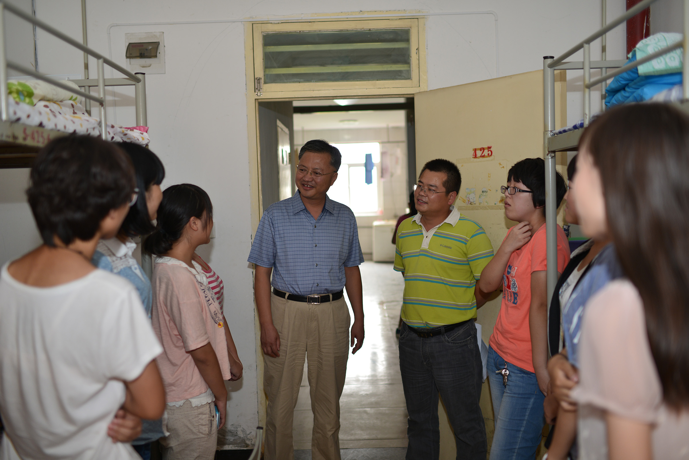 9月1日下午,学院领导班子带领学生工作干部一起走进了2013级新生宿舍看望新生。