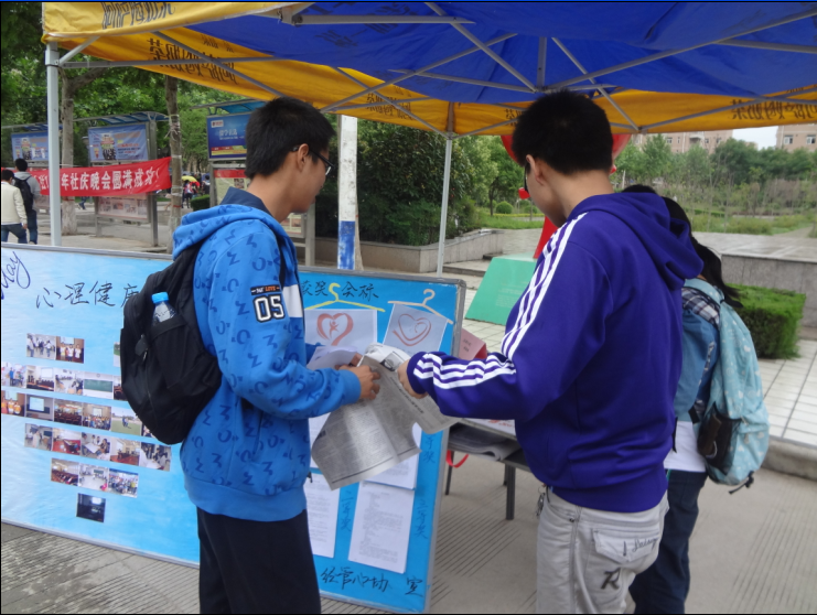 5月31日,beat365官网在长安校区1号教学楼前开展了心理健康教育月成果展示和心理健康教育宣传的活动。