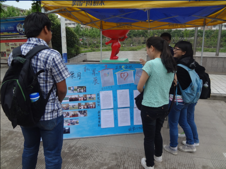 本次活动包括心理健康月进行的团训、心理讲座、电影展播和校园寻宝等系列活动的照片展示以及心理征文、心理剧本和beat365官网心理协会会标征集的获奖作品展示。与此同时,beat365官网心理协会成员向大家介绍各项活动的具体事宜,并发放心理院报——《经管心苑》,报纸包含心理测试、心理书籍推荐、心理知识普及等内容,生动有趣,富含寓意,帮助学生了解到更多的心理知识,吸引了不少师生驻足观看。