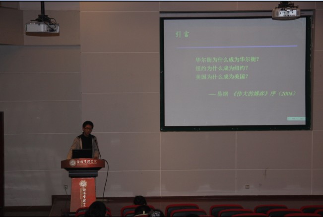 本次交流会交流会以“艺术,人生,体验,心灵”为主题,十余名获奖同学分别以ppt和讲演的形式向大家展示了他们的读书心得。10级经济学基地班鲁璐同学向我们介绍了《以自由看待发展》,她提出了五种反面经济的增长模式,赢得台下一片掌声。11级金融工程班的王赫同学以轻松幽默的方式向我们介绍了《马克思政治经济学原理》,使这部专业性较强的经典著作以一个简单易懂的形态展现在我们面前。其余的介绍者同样以自己独特的方式,为大家都带来了非常精彩有趣的读书心得展示。最后,院团委史歌老师对同学们的交流发言一一进行了点评总结,并为大家系统介绍了写读书心得的方法,使到场同学通过交流活动切实有所收获。