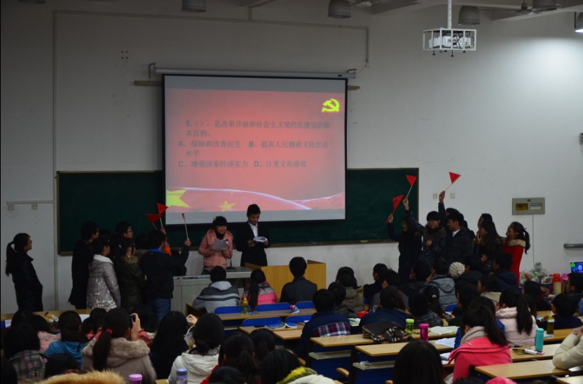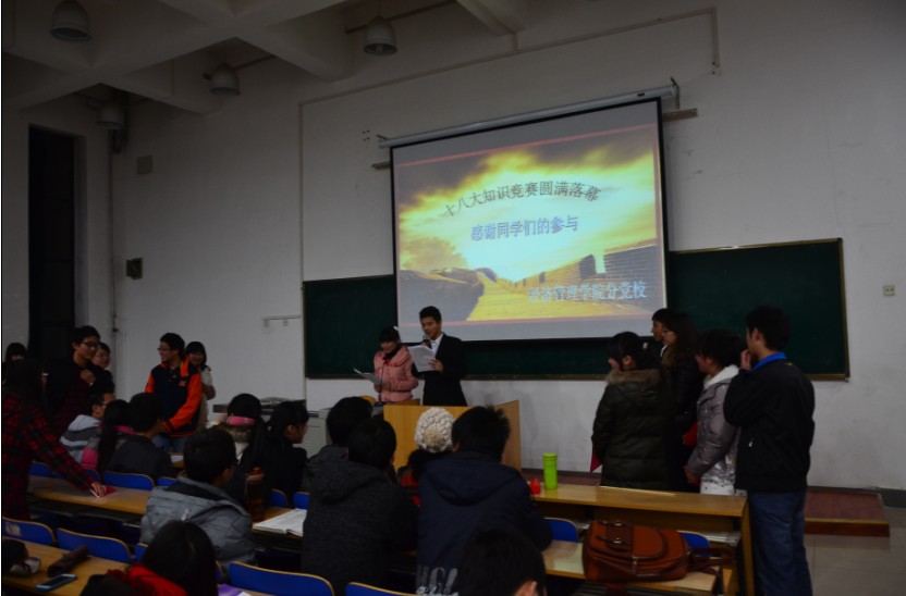 为在广大学生中深入推进学习党的十八大会议精神,激发全院学生的爱党、爱国、爱院热情。2012年12月11日晚上,beat365英国官方网站在4J201教室举办了“坚定理想 立志成才”学习十八大精神主题知识竞赛决赛,全院200余名学生观看了比赛。