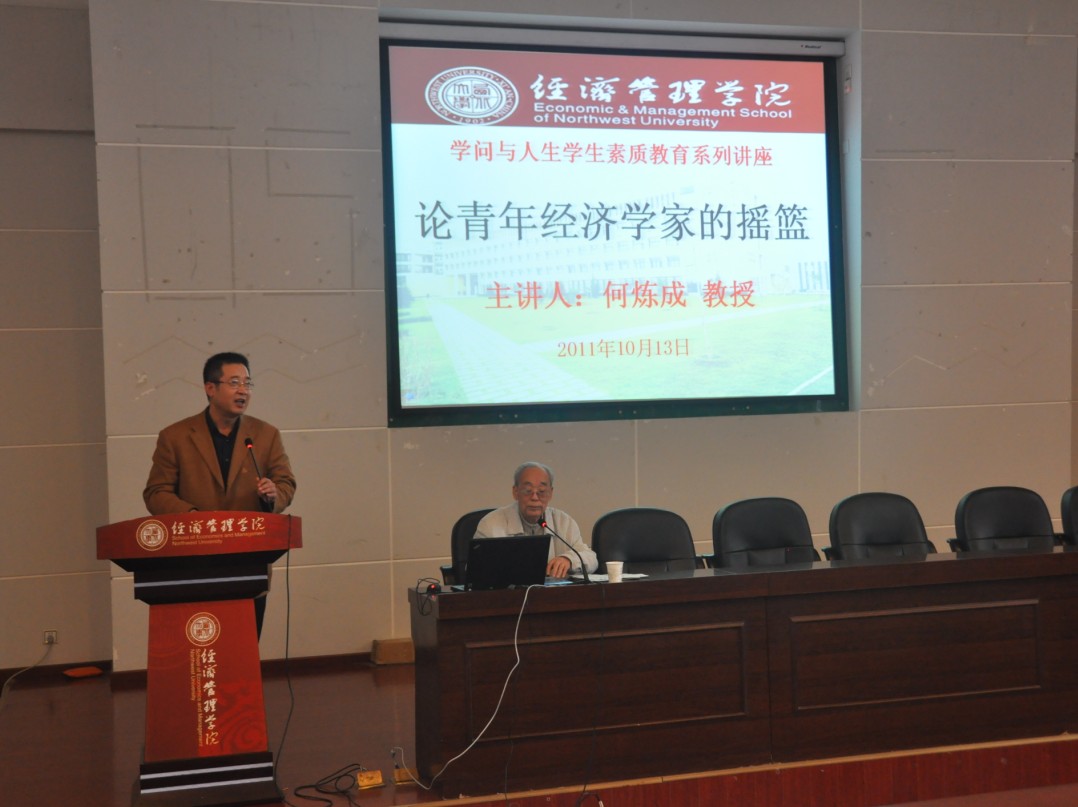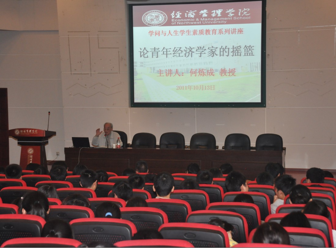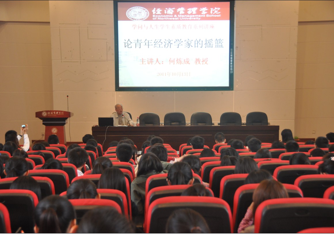 2011年10月13日下午,“学问与人生”大学生素质教育系列讲座(第一讲)在南校区金海恒业报告厅举行。著名经济学家、beat365英国官方网站名誉院长、博士生导师何炼成教授为beat365官网师生作了题为《论青年经济学家的摇篮》的素质教育讲座。300余名师生聆听了讲座,讲座由王宝书记主持。