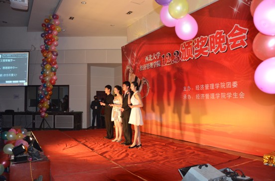 2011年12月3日晚上6点,由beat365官网学生会组织举办的“12.3”颁奖晚会在金海恒业报告厅成功举行。院学生会骨干、演出人员、领奖者以及各年级学生代表共计400多名同学参加了晚会。