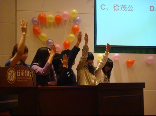 终极问答环节则又将比赛带回到严肃和活泼中,观众和选手都为命题苦苦思考,它通过让同学们对一些热点问题进行阐述,考验了同学们的思维能力应变能力,同时也提高了同学们把专业知识应用到实际的能力,体现了国贸专业的特色。最后,赵景峰教授做了精彩点评。