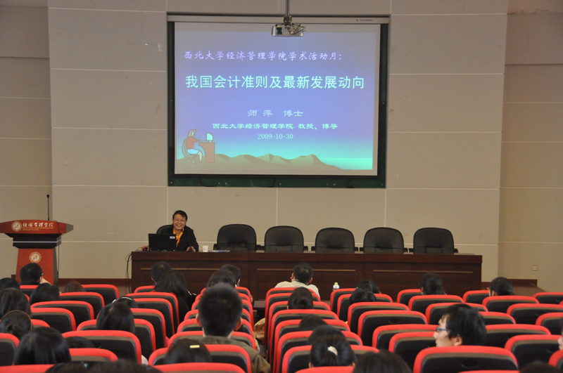 师萍教授首先为大家阐释了会计和会计准则的定义。她指出,会计是以货币为主要计量单位,采用一系列专门的方法和程序,对经济交易活动或事项进行连续、系统、综合地监督和核算,提供经济信息,参与预测决策的一种管理活动;会计准则是会计从业人员所遵循的会计规则和指南。然后,师萍教授通过大量的案例,为大家介绍了发达国家和国际会计准则的制定以及我国会计准则的制定和实施。师萍教授指出,我国按照“立足国情,国际趋同”的原则,已经基本建立起了与国际接轨的会计准则体系,实现了会计处理的标准化、规范化,从而提高了信息质量。最后,师萍教授为大家阐述了我国会计准则的最新发展动向,并与同学们进行了互动,回答了同学们关心的问题。