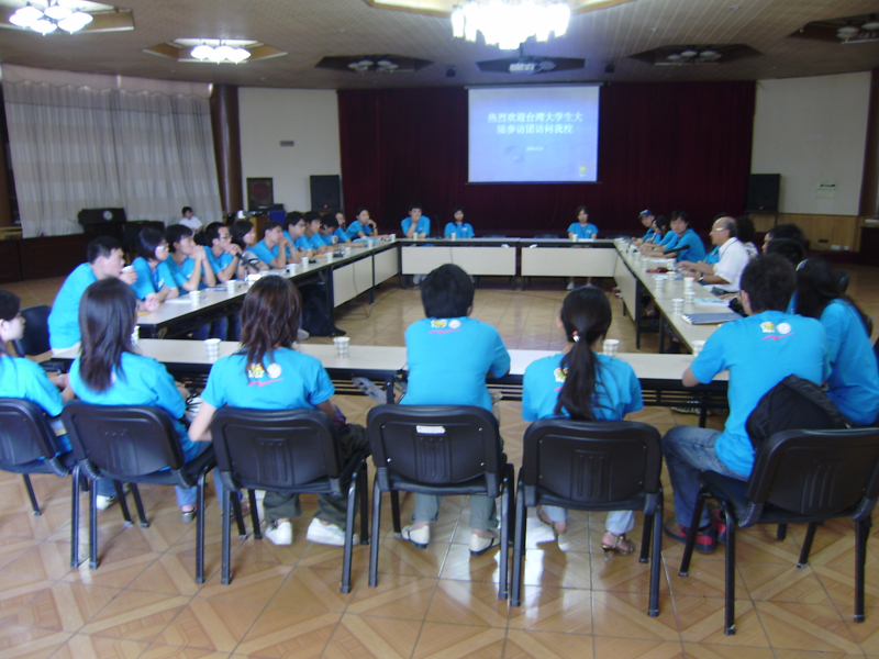 2008年9月4日,beat365官网师生代表共九人在北校区与台湾财团法人纯青社会福利基金会的师生一行举行了交流联谊活动。此次活动是2008年两岸青年文化交流活动的重要组成部分,两岸学子通过近距离的交流接触,促进相互的了解和认识。参加活动的台湾学生代表主要来自国立台湾大学、中原大学、和淡江大学等台湾知名大学,所修专业分别是历史学、文物保护学、企业管理等专业。