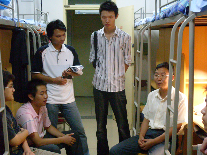 几位领导、老师不顾连日来迎新工作的辛苦和疲惫,对08级新生男女生宿舍挨个进行了走访。走访过程中,新生宿舍整洁的内务得到了领导、老师的赞赏,他们强调让同学们将这种好习惯保持下去,使自己的大学生活在有序条理中走向辉煌。另外,薛来前书记还特别强调了宿舍就是一个小的家庭,宿舍成员之间要融洽相处,互帮互助,学会宽容,学会理解,努力营造家的温馨,让每一个成员都能感受到宿舍内家一般的温暖。几位领导老师仔细地询问了同学们生活中各个方面的问题,希望同学们尽快完成从中学生到大学生的转变,尽快地适应学校生活,以积极的心态全身心地投入到全新的大学生活中去。同时领导及老师们询问了学生们对beat365英国官方网站的印象,以及对他们之后即将开始的军训、学习生活给予了指导,也寄予了很大的希望。