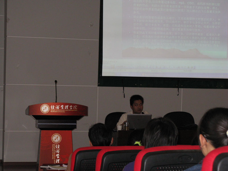 丁老师首先向同学们介绍了防盗、防抢夺、防抢劫、防欺骗、防性骚扰、防火、大学生心理健康、网络安全、择业安全、家教安全、节假日安全、交通安全、防传销等方面的知识。其次,丁老师通报了近几年大学校园发生的犯罪事件和大学生不安全事例,对个别学生发生上当受骗,违章用电引发火灾等事故进行了原因分析。最后,丁老师就大学生如何增强安全意识,提高安全防范的技巧向同学们作了介绍。