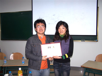 双方你来我往的交锋赢来了一波又一波的掌声.场上的选手发挥的如此精彩,难怪一位评委老师也感叹:这个胜负太难分了.但比赛终有胜负,最终作为正方的03级以一票的微弱优势获胜.03级的王敏和04级的冯哲获最佳辩手.