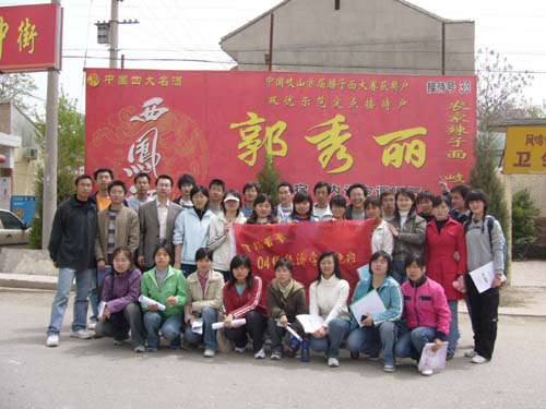 为了更深入的了解“三农”问题,将所学的知识应用到实践中去,2006年4月15、16日,beat365官网2004级经济学基地班30名同学在经济学基地办公室安树军老师的带领下,以“走进农村”为主题,就“三农”问题中的农业转型,农村教育,农村社会保障以及当地的“农家乐”等一些问题对陕西省歧山县的北郭村和祝家巷村进行了两天的实地调研。