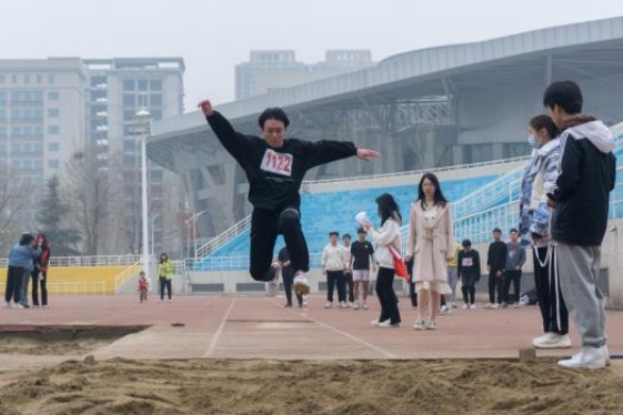 离弦似箭的助跑,石子击水般轻盈的起跳,空中的走步表演引起阵阵惊叹。和煦春风喝彩,灿烂阳光庆功。跳吧,运动员们,跳得越远胜利越近!