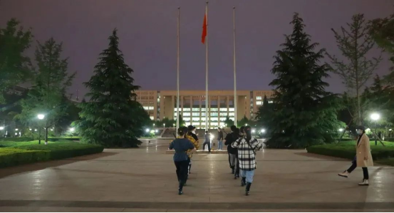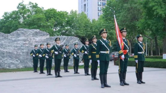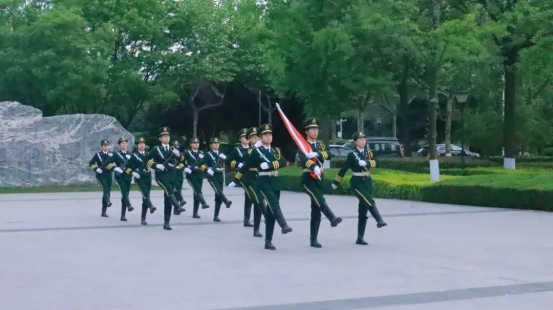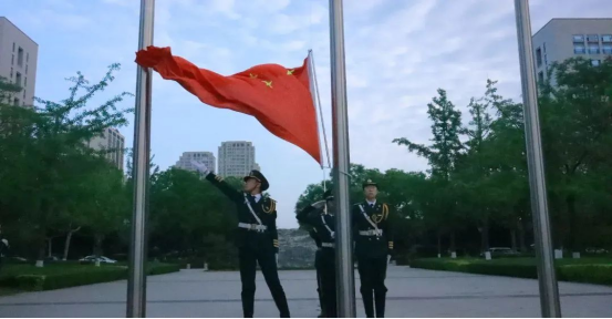 上午7:00,在张敏柔同学的主持下,升旗仪式正式开始。随着“齐步!走!”口令的下达,国护队员们手握钢枪,步伐有力,迎着初升的朝阳,踏着正步,整齐划一的向前走去,护送鲜艳的五星红旗入场。“向国旗——敬礼!”,国歌奏响,五星红旗和着乐章冉冉升起,直抵云端,高高飘扬的五星红旗寄托着先辈们敢于革命的斗争精神与敢于奉献的五四精神,激励一代又一代的青年为建设祖国贡献力量。