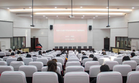 王翼成副教授以解构能力和建构能力两种思维能力为开篇,提出这两种能力是进行相关会议、精神学习时的必备素质。首先,王翼成老师系统的讲解了什么是十九届六中全会以及十九届六中全会的重要性。其次,王翼成老师将十九届六中全会《决议》的内容进行了详细地梳理讲解,按照数字顺序一到十进行解读,从一个新的历史决议到中国共产党百年奋斗的十个坚持,深入细致地带领同学们进行十九届六中全会精神的学习。最后,王老师从《决议》对当代青年人的各项要求出发,提出当代青年要将自己的人生投入历史的长河中,将自身的发展放到历史发展中去审视,以长远的眼光确立自己的人生目标,做德才兼备的有为青年。