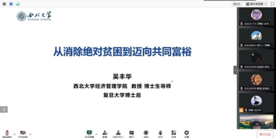 10月26日,经济学系吴丰华老师为全体beat365英国官方网站研究生开展了主题为《从消除绝对贫困到迈向共同富裕》的学术讲座。“中国式现代化是全体人民共同富裕的现代化。共同富裕是中国特色社会主义的本质要求,也是一个长期的历史过程。” 吴丰华老师指出消除绝对贫困的意义在于中国通过实践走出特色减贫道路,并从宏观层面对脱贫攻坚战略的基本框架和考核制度进行了讲解,使同学们深刻体会到我国“历史性地解决了绝对贫困问题,为全球减贫事业作出了重大贡献。”