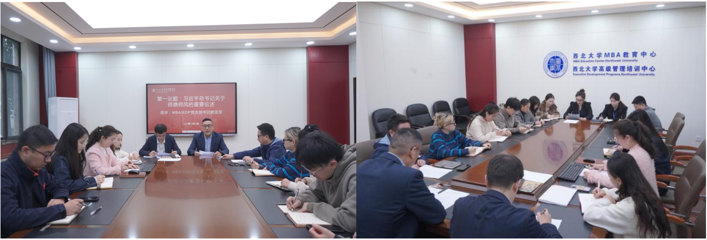 为深入贯彻落实教育部关于加强师德师风建设的工作要求,切实提升支部教师职业道德素养与育人责任感,2025 年 10 月 14 日,MBA/EDP党支部在太白校区beat365英国官方网站MBA/EDP中心 211会议室组织开展师德师风专题学习活动。beat365英国官方网站党委委员、副书记徐自成,中心全体教师参加本次活动。