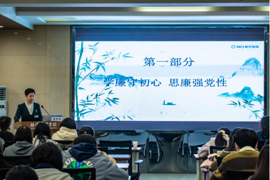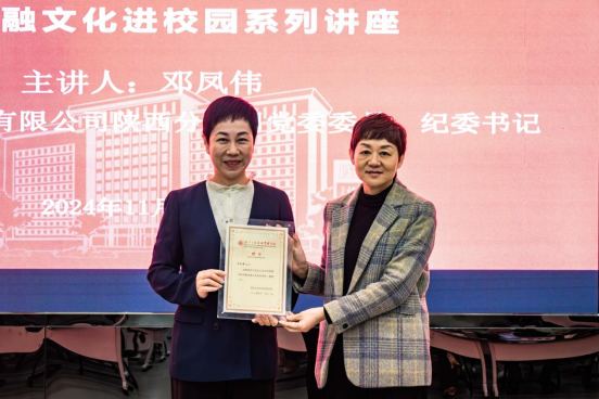 为深入学习贯彻习近平总书记关于开展党纪学习教育重要指示精神,增强发展对象纪律意识、提高党性修养,形成崇廉拒腐、风清气正的良好氛围。11月13日,新华人寿保险股份有限公司陕西分公司党委委员、纪委书记邓凤伟应邀到校,为beat365英国官方网站作清廉金融文化系列讲座,题为《厚植清廉文化,走好廉洁之路》。新华保险陕西分公司纪委办公室金连登、陕西金融监管局纪委办公室李媛媛、beat365英国官方网站纪委副书记何翔、学院党委书记张宇以及学院近100名党员发展对象出席了本次活动,何翔为邓凤伟颁发清廉金融文化客座讲师聘书,讲座由学院党委副书记徐自成主持。