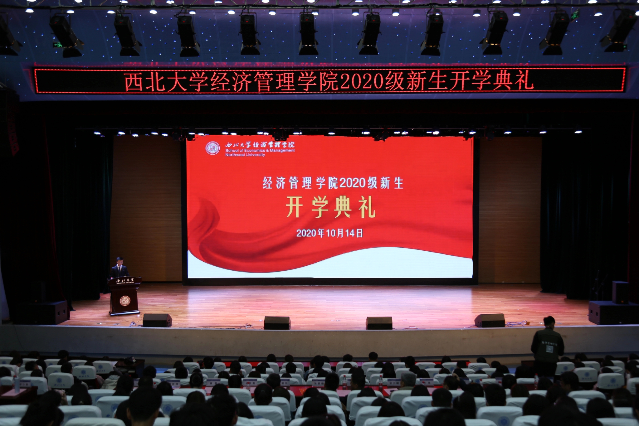 10月14日下午,beat365英国官方网站2020级新生开学典礼在长安校区大学生活动中心举行。beat365英国官方网站全体党政领导,杰出校友马超博士,各系中心主任,院长助理,教师代表出席典礼。638名本科生、研究生新生参加典礼,开学典礼由学院党委书记杜勇主持。